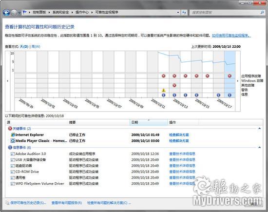 18、可靠性监视器。Vista里有个可靠性和性能监视器,如今分离成独立的资源监视器和可靠性监视器,且后者移动到新的操作中心里,统计与分析更丰富、更合理。