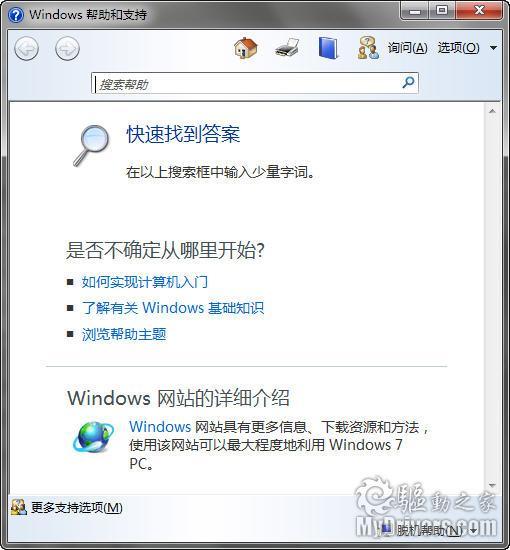 63、真正实用的帮助与支持。首页面只有三个链接、一个搜索框和一个微软Windows网站链接,看起来更简洁,但帮助内容其实很丰富,搜索也有所改进。