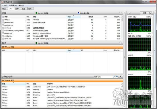 44、进程分析。异常强大的资源监视器,远胜Vista上的那个,可以完全抛弃任何第三方此类工具了。