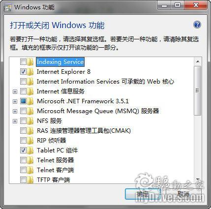 42、移除程序。Windows的捆绑策略招致了很多批评,为此Vista增加了打开或关闭Windows功能, Windows 7又增加了更多条目,甚至包括IE。当然,这样也只是隐藏起来而已,并非彻底卸载。