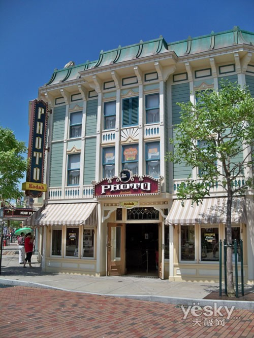 走进香港迪士尼第一个景点就是美国小镇大街,这个景点是根据典型的美国小镇设计而成,富于怀旧色彩,让人进入时光倒流之旅。天公作美,当天天气非常好,蔚蓝的天空光线充足,Z950的成像色彩还原也十分到位。