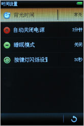 在二级目录下,主要是图标加文字的说明。台电T51提供有五种级别的屏幕亮度、菜单透明度以及字符滚动速度可选;系统字体就有宋体、幼圆、楷体和黑体四种,风格随心选择。为节省电源,台电T51也提供了背光时间、自动关闭电源、睡眠模式以及按键灯闪烁的设置。