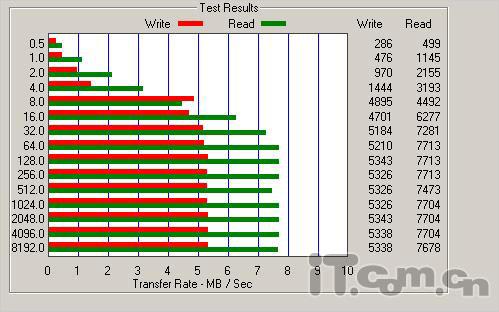 通过软件测试,可以看到台电T51的写入数据速率为5338kb/s,中规中矩。反观读取数据,最高可达7704kb/s,表现尚算让人满意。