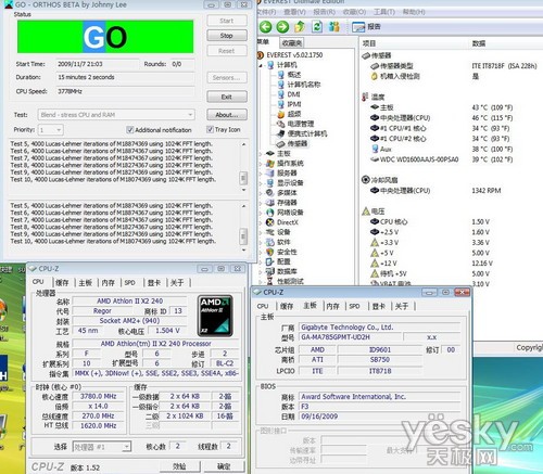 AMD X2 240超到3.78GHz,并能通过ORTHOS拷机测试,足以证明系统稳定。