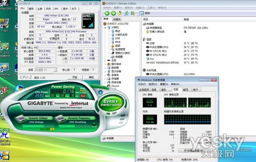 室温26度,系统空载,AMD CNQ 与技嘉EasySaver节能软件开启,EVEREST显示的温度31度。