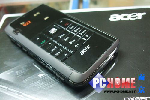 首先我们看到的这款手机名为Acer DX650。从外形来看,该机采用直板造型设计,硕大的身躯以及接近矩形的线条轮廓让人感到有些呆板的感觉,不过在进一步观察之后我们发现该机还采用了非对称设计,即对比之下,机身一侧曲线和边角较为柔和。作为在设计上的最大亮点,Acer DX650融入了久违的双面设计理念,一边支持触控操作一边使用传统数字按键的设计风格让人们联想起三星音乐手机SGH-F308。