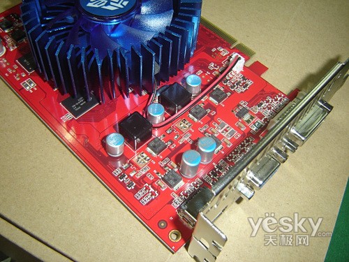 铭瑄GT240变形金刚高清版在输出接口方面,采用VGA/DVI/HDMI组合,而且显卡整合HD Audio CODEC,只要通过HDMI接口就能实现音画同步输出,非常方便。