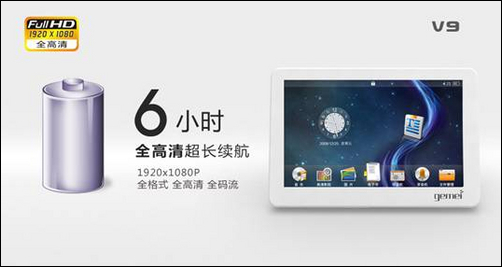 值得一提的是,歌美爱视V9传承了HD8800的低功耗技术成果,在更大屏幕播放的情况下依然保持时长高达6小时的播放,即将代替歌美HD8800,荣登全高清MP4当中播放时间最长最稳定的掌上高清播霸。