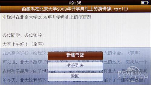 系统默认全频播放,如果视频需要保持原比例播放需要退出在设置处进行调节。退出视频播放程序时,程序会提示是否保存书签,以方便使用者下次接着观看。总的来说,金星JXD2000的视频功能还是很全面的,只是在应付高分辨率、高码流的影片时有些吃力。