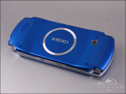 金星JXD2000的背面硕大醒目的“金星JXD”印制于一装饰用的银色圆环内,左右两边各有一排圆孔,但是细看才发现只有左边才有扬声器孔,扬声器外放音量充足,声音清脆。背面右边配备了一颗500万像素的摄像头,该摄像头是鸡肋还是实用?笔者会在后面评测中点评。