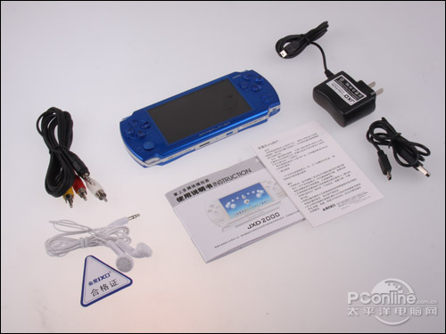 另外,金星JXD2000的配件充电器、USB数据线、耳塞、TV—OUT接线以及产品说明书等一应俱全。但更多使用配件如电影支架、收音天线、游戏光盘等根据官网信息是附带的,但是笔者手中的样机没有配备。