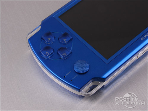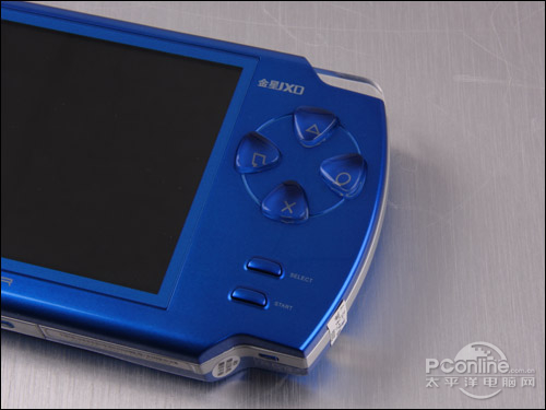 笔者手中拿到的是宝石蓝的版本。金星JXD2000无论在重量、大小还是按键设置都和PSP非常相像。这款宝石蓝的金星JXD2000机身采用全烤漆工艺,炫丽的宝石蓝一扫黑白的单调。金星JXD2000的边缘使用了磨砂工艺处理的银色边框,让产品更加耐看。