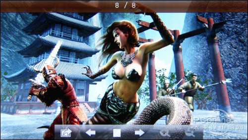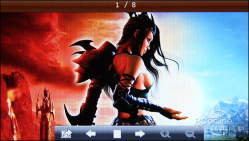 无论是在表现景物还是动画图片上,金星JXD2000没有让笔者失望,虽然分辨率不高,但是一般图片的色彩还原、层次感和亮度还是可以体现出来的,只是细腻度上不够完美。在图片的幻灯显示中,图片之间的3D切换效果十分华丽,观看图片还是非常享受的。
