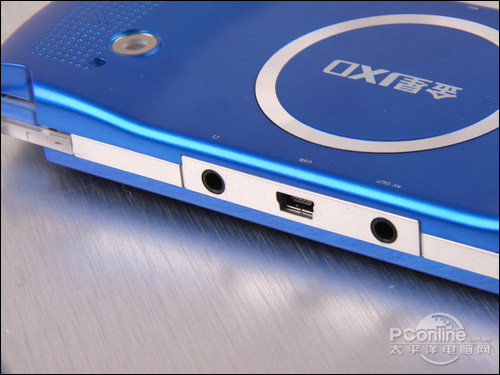金星JXD2000的顶端左至右依次为“L”键、耳塞接口、USB接口、TV-OUT接口以及“R”键。底端则依次分布有TF卡插槽、MIC孔和电源按钮和最边凹下部分的Reset键。