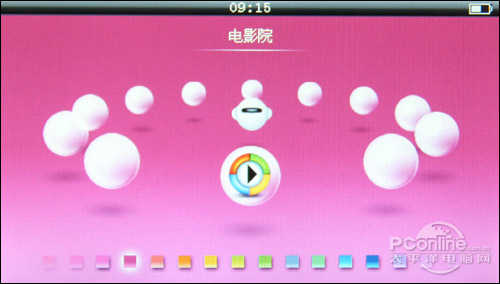 金星JXD2000采用1600万色的4.3英寸的高清屏,分辨率与上一代金星JXD1000并无改进,同为480×272,相对市面上4.3英寸的显示屏来说并不高,但是开机后笔者发现显示效果不错,亮度适中,色彩柔和,并无锯齿感。金星JXD2000采用了原形图标呈环形排列的UI界面,虽然视觉上不错,但是由于程序多达12个,切换到需要的程序并不便捷,而且转换程序时图标会抖动一下,这和金星JXD1000类似,但是让响应速度有所减慢,这一点的人性化还是有些欠缺。