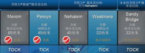 基于英特尔tick tock钟摆战略, 2010年我们将迎来一个更为里程碑式的处理器制程工艺新纪元——基于32纳米制程工艺的英特尔全新酷睿处理器系列将于1月全新亮相。基于英特尔的技术优势和成熟度,智能的酷睿i7、i5、i3处理器将再次向人们诠释“摩尔定律”的神奇之处——由于制程工艺更上一层楼,最新的全新酷睿处理器尺寸更小、速度更快、性能更强、能耗更低。这为普通用户享受更为多样化的产品提供了更多的空间与潜能,比如更小巧的电脑主机、更强劲的功能、更轻薄时尚的笔记本电脑、更长的续航时间、更低的能耗和价格等等……