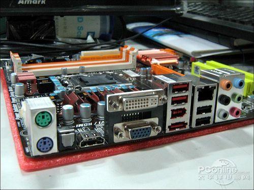 主板提供了HDMI+DVI+VGA+光纤SPDIF+ IEEE1394a等诸多实用接口,能满足高清用户的需求。