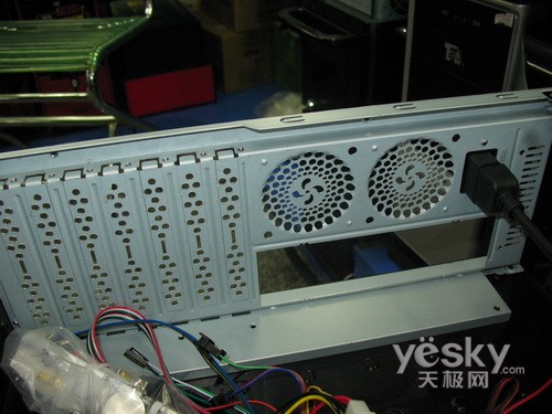 东方城魔方9号机箱的后置面板上,预留了两个8CM的散热风扇安装位,用户可以根据自己的散热需求自行安装风扇,加强机箱的散热。此外,还有7个PCI扩展槽,可以满足绝大部分用户的扩展需求。