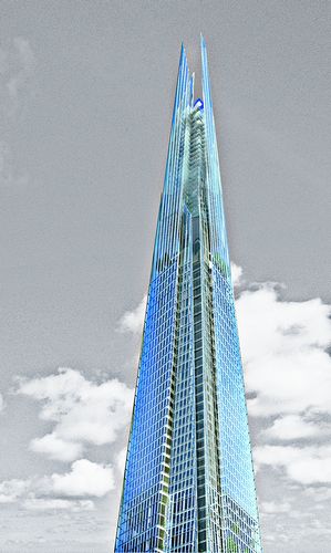 由意大利建筑师伦佐·皮亚诺设计的这座72层的玻璃大厦将于2012 年在伦敦建成,届时它将成为整个西欧最高的建筑。一种全新的建筑方式将让它的建设速度超过今天所有的摩天大楼:在向上盖楼的同时向下挖掘地基。一个特制的深潜平台能够在开挖地基之前就将大厦的结构支柱竖立在地面上,这样建筑工人就能一边挖掘地基一边在支柱的顶端安装电梯、楼梯和机械设备了——通常情况下都要等到地基打好之后才能进行其他工作。负责该工程建设的 Mace Group 公司的工程师 Bob Gordon 估计,这项技术的应用能节省 7 个月的工期。shardlondonbridge.com