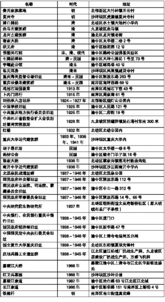 幸军说,这批文物记载了城市发展历程,我市要通过这些珍贵的文物保护单位,建立起3000年历史序列。“特别是突出抗战历史,这是我市特有的历史资源。”此次文物保护单位中很多属于群落,沙区就有重庆大学近代建筑群、南开中学近代建筑群、山洞抗战遗址群等。而重庆大轰炸遗址群则包括了位于渝中区磁器街、人民公园、北碚文星湾的抗战民用防空洞、重庆消防人员殉职纪念碑、北碚报警台等多处遗址。