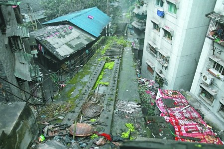 背景资料:望龙门缆车是国内第一条投入运营的山地交通工具,由著名桥梁专家茅以升主持设计,始建于1944年2月。缆车全长178米,上下高差46.9米,备有客车车厢两辆,每辆载客50人,日客运量开通时达到了7000人次,一度成为颇具山城特色的景观。由于1993年修建滨江路,望龙门缆车站被拆除。据渝中区文管所透露,缆车轨道在几年前被市民偷偷带走,现在只剩下缆车道。 记者 纪文伶
