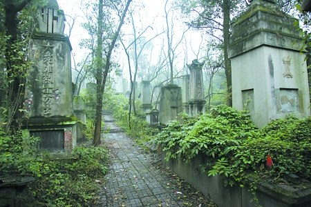 在沙坪公园一个僻静的角落里,有一梯布满青苔的石阶,向上走几十步,一座拱形的石门将外面热闹的公园和墓园里的座座墓碑隔绝起来。在一道泥瓦砌成的围墙里,有几座火炬头式的塔尖露出来。偶尔有第一次前来的游人好奇地朝里面望一眼,又匆匆离去。墓园前的铁门紧锁,上面布满斑斑锈迹。