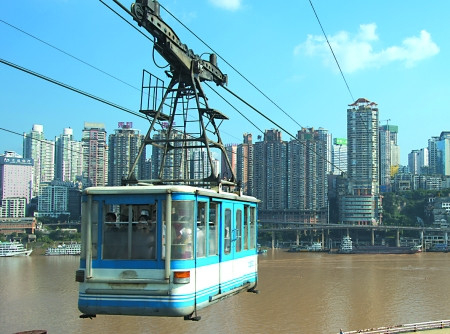 背景资料:嘉陵江索道建于1980年12月15日,1982年1月1日建成试通行。它是中国第一条城市跨江客运索道,索道全长740米,车厢最大容量 46人,最大牵引速度6.5米/秒,总投资378万元。通车后,江北区和市中区(现渝中区)的人们出行便利了,重庆市旅游业也增加了一个新景点。当时,索道日客流量最大达到25400人次;而现在,日客流量只有1000人次左右,入不敷出。 记者 蔡文沛