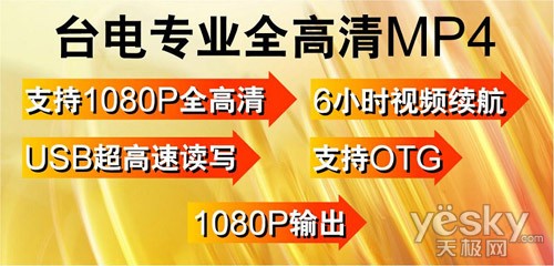 作为国内著名的台电数码,一直致力于最新科技的研发跟进,并一直把用户体验作为产品开发的重中之重对待。C510HD是台电科技推出的首款“专业全高清”MP4。相对于市售的“伪高清”产品,C510HD最大的特点就是采用了台电针对随身数码设备独立定制开发的T8100主控方案。从而使C510HD具备了专业全高清MP4的几大特点:全格式1080P兼容、长达6小时的视频播放时间、高速USB读写速度、支持OTG功能、HDMI&色差双1080P输出等……