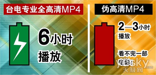高清视频解码的复杂与功耗直接导致了MP4续航时间的缩短和发热量大的问题,而那些将高清播放盒方案“借用”到高清MP4上的机器,更是由于天生的方案缺陷,耗电量与发热量的问题更为突出。播放1080P电影,常常是不到2个小时电池就已经告罄!