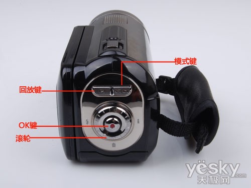 机身后部分布着爱国者AHD-Z10几乎所有的操作按键。包括回放键、摄像拍照模式切换键、录像/确定键以及滚轮,滚轮阻尼适中。在操作过程中,让小编遇到麻烦的是拇指有些够不到波轮左侧的闪光灯按键,当然AHD-Z10采用触摸式屏幕,所有的功能都可以通过其实现。