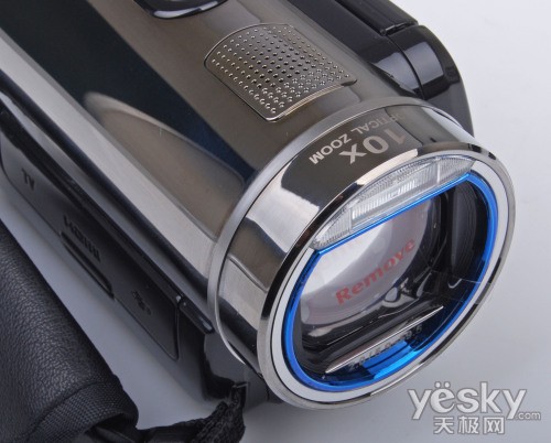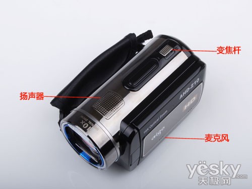爱国者AHD-Z10的顶部镜筒部分和其他部分采用两种颜色的设计风格。镜筒部分的金属色设计使其质感得到了很大的提升,当然也更加容易留下指纹。扬声器被设计在了机身上方,音量很大。