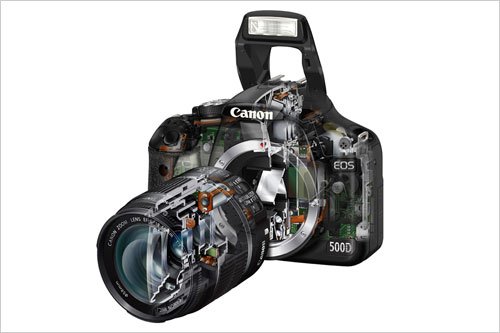 性能配置方面,500D使用的是一块APS-C尺寸的CMOS,像素提升至1500万,和50D属于一个级别,此外,担负着相机图像处理的是最新的DIGIC 4数字影像处理器。图像处理的速度约是EOS 450D采用的DIGIC 3的1.3倍。不仅如此,DIGIC 4还为图像的低噪点化做出了巨大贡献,实现了高达ISO 12800的扩展感光度和ISO 100至ISO 3200的常用感光度。