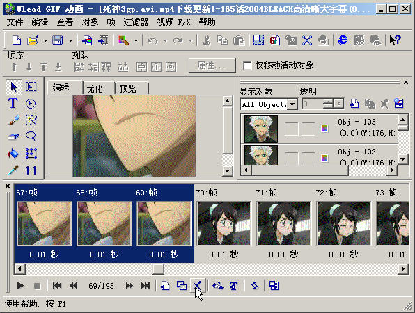 5、完成转换后使用Ulead GIF Animator 5打开,进行编辑。把多余的帧删除,如图所示。