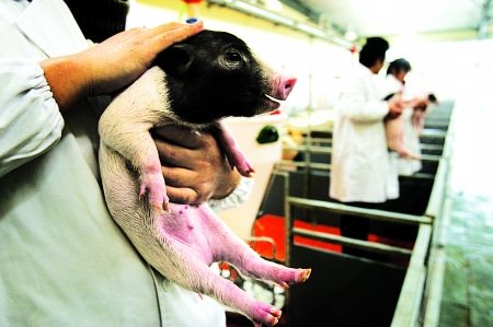 本报讯(记者 纪文伶)猪大多都是在简陋、肮脏的猪圈里终其一生,而我市有一群为满足科研而生的小猪,它们却住在造价8000万元的猪圈里,每日 “生活费”近50元。它们的豪宅是怎样的呢?生活是什么样的?昨日记者从市科委获悉,国家小型猪生物学科研基地近日在大渡口区建桥工业园区建立,500多头迷你巴马香猪生活在“豪华”猪圈里。据悉,我市小型猪的医学生物学应用将有望形成产业化。