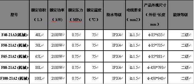 产品参数表