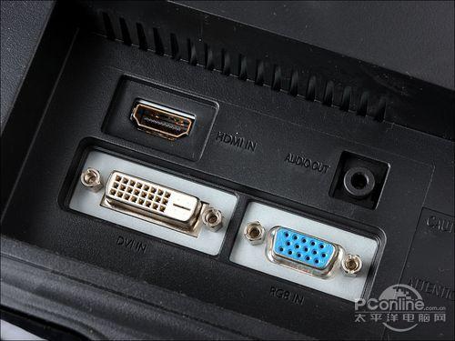 产品视频接口提供了VGA+DVI+HDMI的视频接口设计,另外还提供音频接口,从接口设计来看这款显示器主要针对娱乐的。