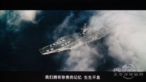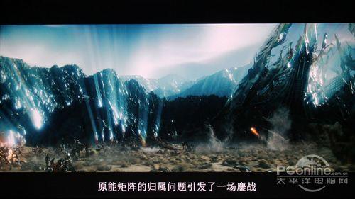 高清影片测试:由于高清片源是2.35:1的比例,所以就算是16:9的显示器,在观看影片的时候全屏有一定的黑边。