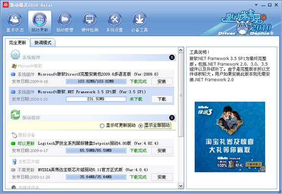 提供这些常用微软组件的下载,是驱动精灵义不容辞的责任,驱动精灵2010版本中还将陆续增加此类必备组件的升级。