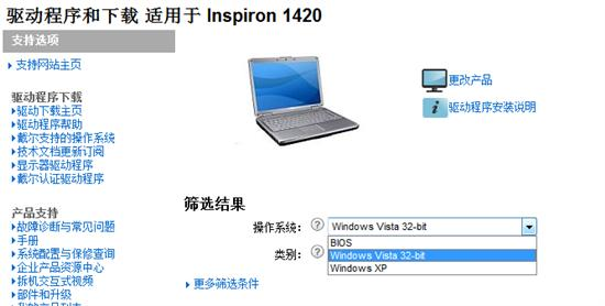 例如戴尔的Inspiron 1420笔记本,官方仅仅提供了Windows Vista驱动和 Windows XP驱动下载。