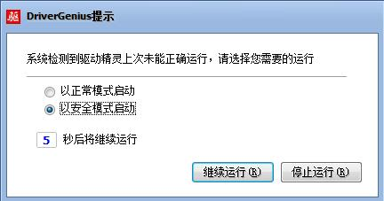 驱动精灵2010版本专门针对此问题创造了智能化的软件安全启动模式,如驱动精灵软件检测到上次意外关闭,那么本次启动时将启动软件安全启动模式选 单,在此模式下驱动精灵的硬件检测功能将被屏蔽,但是用户依然可以获取到所需的驱动。同时用户还可以根据问题反馈把自己的情况提交给我们,以协助我们顺利 修正问题。