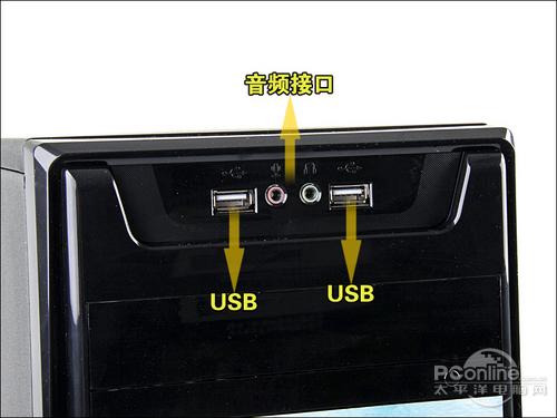 威盛 7335机箱在前面板的中部提供了前置USB接口和音频接口,给用户带来了方便。
