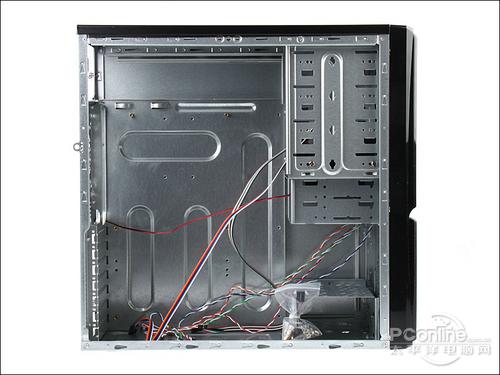 打开机箱侧面板后可以看到星宇泉 小麻雀8107hr机箱内部的结构,由于机箱采用的是MircoATX结构,所以内部空间相对比正常ATX结构的机箱空间显得略微狭窄,只能安装MircoATX结构的主板和电源。
