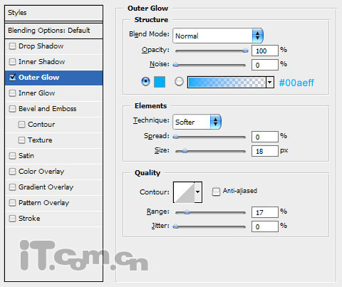 3、设置激光电流的图层样式:“图层—图层样式—外发光”