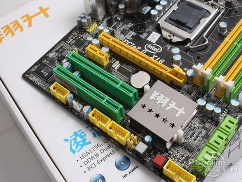 在PCI扩展上,H55/H57无法拆分PCI-E通道,也就是说这两款芯片组将无法支持CrossFireX,i乐主板凌志H55V提供了单条PCI-E 2.0 X16插槽以便对应用户外部显卡扩展的需求,此外还提供了1条PCI-E及2条PCI接口。据英特尔方面透露,该系列CPU将具有显示切换的特性,能在内建显示核心和外部显卡之间实时切换,更加有利于能耗的优化。
