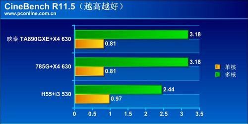 在Cinebench R11.5软件测试中,同样是使用了四核处理器的630平台表现更好。