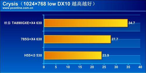 在《Crysis》游戏测试中,映泰 TA890GXE平台性能仍然领先。