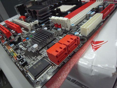 磁盘部分,映泰 TA890GXE主板提供了5个高速SATA3接口,可以很好的满足Raid 0模式下的数据传输需求,另外主板上也提供了电源开关和重启按钮,方便用户在裸机平台下使用。