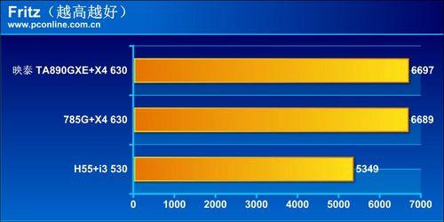 在Fritz软件测试中,使用了同一颗处理器的两款AMD平台性能相同,而原生的四核心630处理器比通过超线程技术支持四线程的i3-530处理器在这个测试中表现好,也是预料之中的事情。