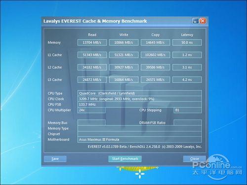 在Everest软件的内存测试中,AMD平台略微领先,使用了同处理器的两个AMD主板平台之间表现也基本一致。