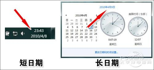 有网友问了,这里的短日期、长日期究竟都是什么意思?实际使用中有什么区别吗?其实道理很简单,Windows7在不同的位置 中会使用不同的日期格式,比如在“超级任务栏”或“资源管理器”往往采用短日期,而日期面板由于空间宽裕则更青睐于长日期。